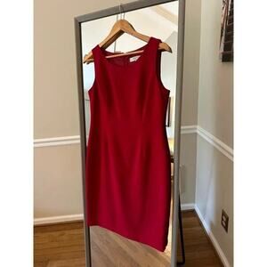 Kasper Red Sheath Dress Size 6P Iconic Stretch Crepe Classic Workwear Midi Dress