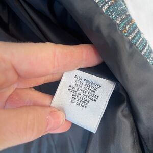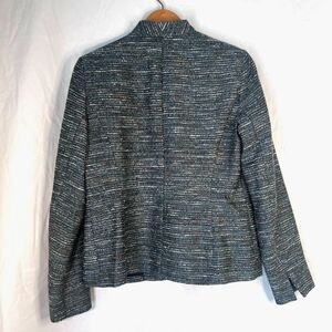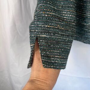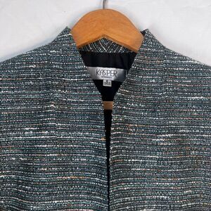 Kasper Separates Green Metallic Tweed Open Front Blazer Office Core Size 6