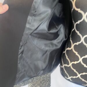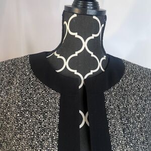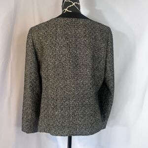 Kasper Separates Metallic Tweed Contrast Black Trim Open Front Blazer Size 14P