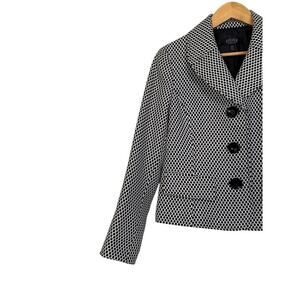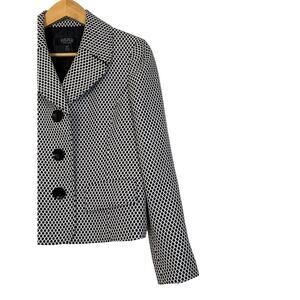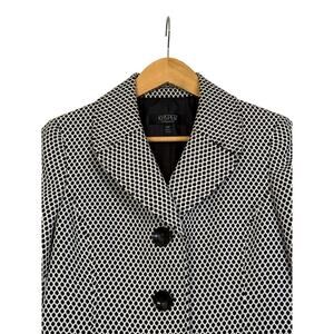 Kasper Separates Women’s Mini Dot Knit Three Button Blazer Sz 10P Black White