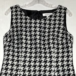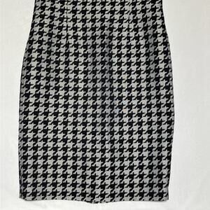 Kasper Sheath Dress Womens 8 Black Grey Houndstooth Midi Stretch Office