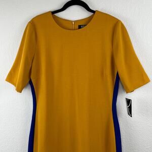 Kasper Short Sleeve Knit Colorblock Sheath Midi Dress Mustard Combo XXL NWT