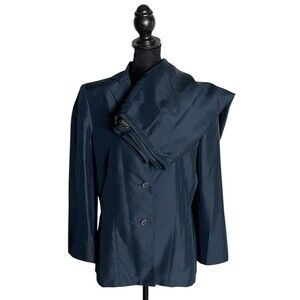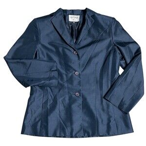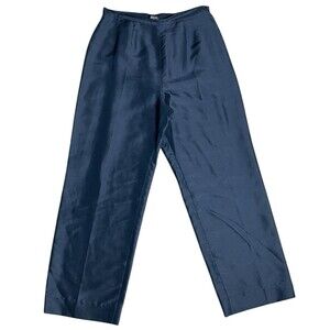 Kasper Silk Pants Suit Womens 10 Navy Blue ASL Single Breasted Classic Blazer