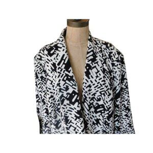 Elevate your wardrobe with this Kasper plus-size blazer. Featuring 3/4 sleeves and a fully lined interior, this jacket offers both style and comfort. New with tags, it's perfect for any occasion. Fold over lapels, elegant print fabric, cuffed 3/4 sleeves, lined, draping front and stunning year round jacket