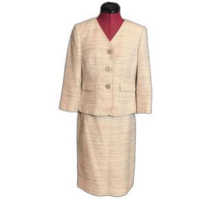 Kasper Skirt Suit Women’s Petite Size 4P Cream Tweed 2-Piece Set Blazer & Skirt