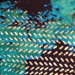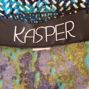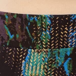 Kasper Skirt Woman Plus Size Teal Gold Metalic Elastic Waist A-Line Stretch