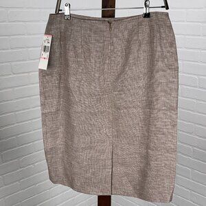 Kasper Skirt Women 10 Brown White Woven Linen Lined Straight Zip Career NWT
