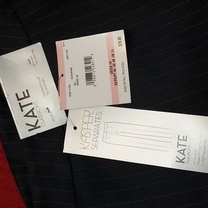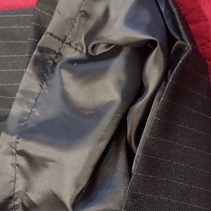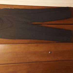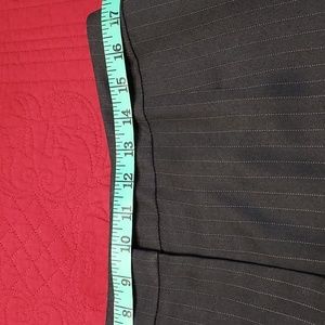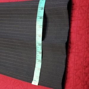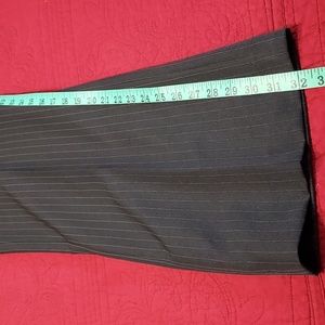 These stylish, no pockets, career professional, and fully lined black with khaki pin stripes slacks are a must-have for the office. They sit at the waist, relaxed through the leg and thigh with a straight leg, and a front zip-up hook and button closure. See all the pictures for details and measurements. 101/13/24BI