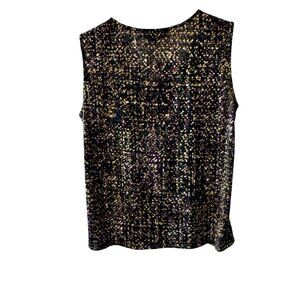 Kasper Sleeveless Black & Multicolor Print Blouse Womens Size Large