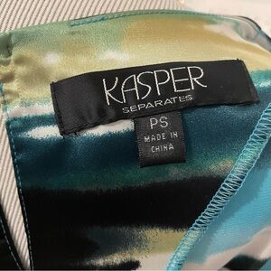 Kasper Sleeveless Pullover. Blue and Green Satin Fabric. Petite small.