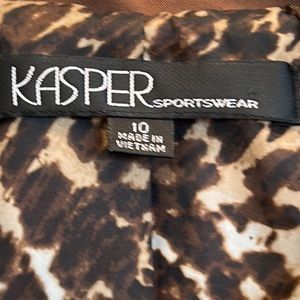 Kasper Sportswear Brown Jacket with Tortoise Buttons and Leopard Lining sz.10