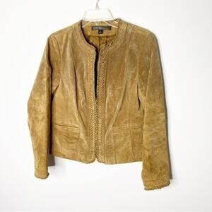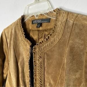 Kasper Sportswear Brown Leather Zip Front Jacket Size Small