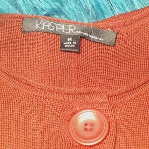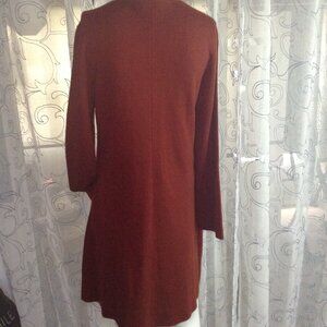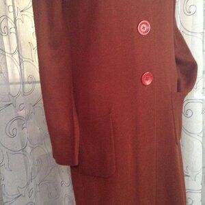 Kasper Sportswear "M" Duster, Wool/Acrylic Blend, Eclectic Granny, Cabincore, Soft Rust colored Duster, Cute, Large buttons, 2 pockets. Shoulders: 16", Pit-pit: 18", Length: 35" RN54050, Warm, Fall hikes, Bonfires; Gently Pre-loved with NO visible signs of wear.