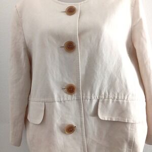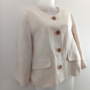 Kasper Spring Women Blazer Size 14 Ivory Linen Boxy Career Old Money Lightweight