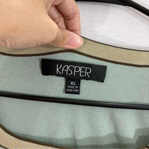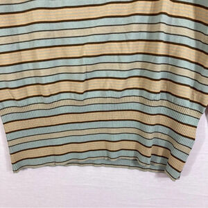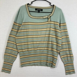Kasper Square Neck Bow Detail Striped Tight Knit Vintage Inspired Sweater XL