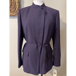 Kasper Suit Jacket Blazer 10 Purple Plum Textured Poly Adjustable Mock Neck NEW