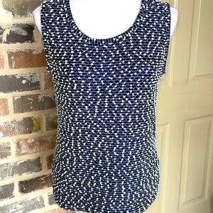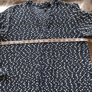 Kasper Navy and White Belted Cardigan and scoop neck Tank Size Medium. 3/4 length sleeves. Self tie. Cardigan twinset. Excellent condition. Approximate measurements in photos.