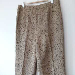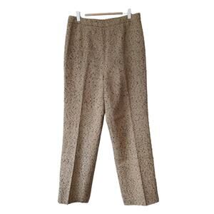 Kasper Womens Size 10 Silk and Rayon Blend High Waist Boucle Tweed Style Dress Pants Slacks - Straight Leg Fully Lined with Side Zipper - Warm Tan with Black Flecks