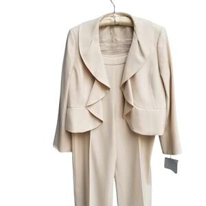 Kasper Tan Lightweight Ruffle Collar Pants Suit Size 16