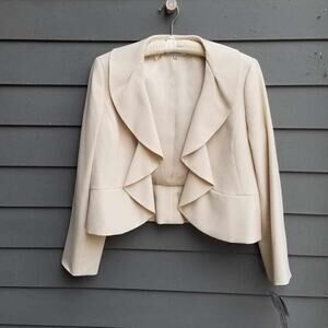 Kasper Tan Lightweight Ruffle Collar Pants Suit Size 16. Pants have a side zipper. Worn once and cleaned. Hemmed for 5’5” height.