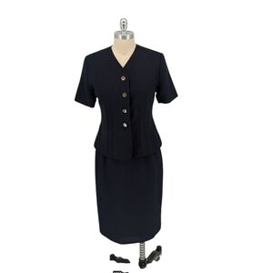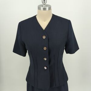 Kasper Top and Skirt Set Navy Blue size 8P retro vintage preppy Business casual