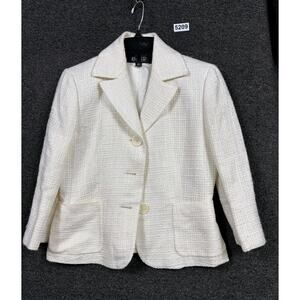 Kasper Tweed Blazer Jacket Womens Size 2P Ivory 3 Buttons Closure Office Casual