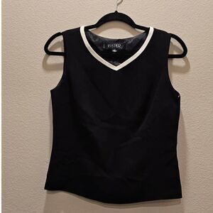 Kasper V-Neck Two Tone Sleeveless Black and White Top Size 4P