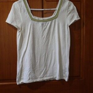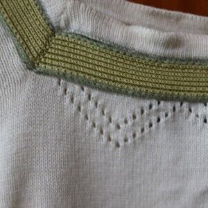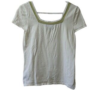 Kasper Vintage Cream & Green Square Neck Knit Top Medium