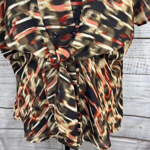 Kasper Warm-Toned Short Sleeve Blouse | Size 10 | Tie Front