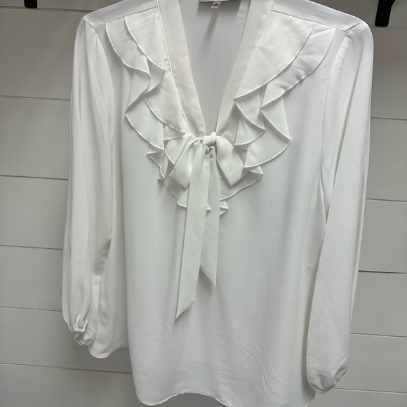 Kasper White Ruffled Blouse