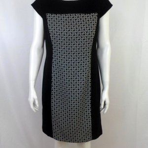 Kasper Womens 8 Black White Geometric Print Panel Cap Sleeve Sheath Dress