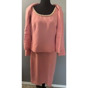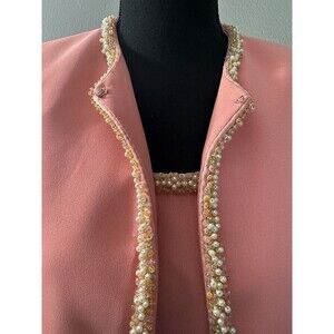 Kasper Womens 8P Formal 3 Piece Skirt Suit Beaded Trim Jacket Peach Outfit EUC