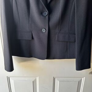 Elegant Kasper women’s blazer in classic black, size 2 Petite.