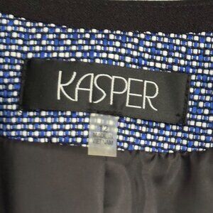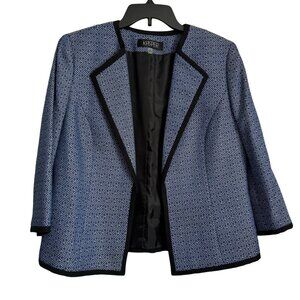 Kasper Womens Blazer Black Trim Size 12 Blue & White Made In Vietnam blazer