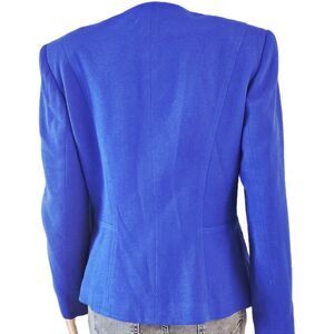 The Kasper Women's Blazer in Size 8 is a stylish and versatile piece designed for business occasions. Made from a blend of polyester and 100% linen, this suit jacket features a notch lapel style and long sleeves. The jacket is lined maintenance. The classic blue color and solid pattern make it a timeless addition to any woman's wardrobe, suitable for the winter, fall, and spring seasons. This blazer from Kasper offers a regular fit and is a must-have for any professional setting.