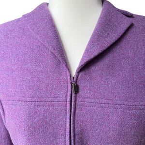 Kasper Womens Blazer Wool Blend Zip Collar Office Purple Knit