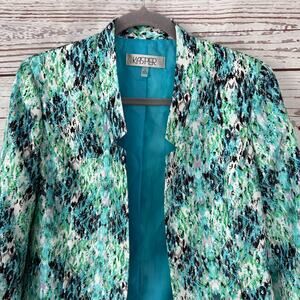 Kasper Women's Blue Green Print Open Front Blazer Jacket Size 6