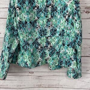 Kasper Women's Blue Green Print Open Front Blazer Jacket Size 6. Shell and Lining 100%Polyester. Approx. measurements pit to pit 18 in. Sleeve length 24 in. Blazer length 22 in. Pre-owned in good condition, no holes or stain.