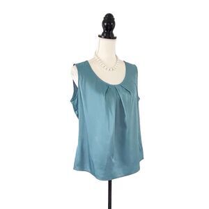 Kasper Women’s Blue Green Sleeveless Pleated Scoop Neck Tank Size L