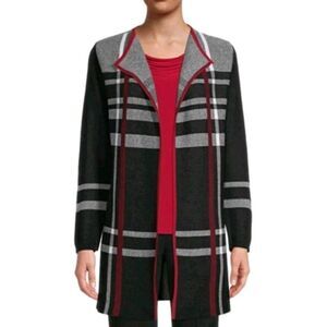 Kasper Women's Cardigan Size L Black/Red Plaid Long Sleeve Open Front Cotton