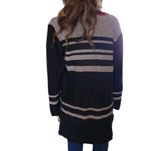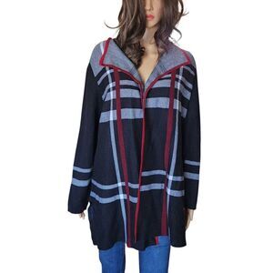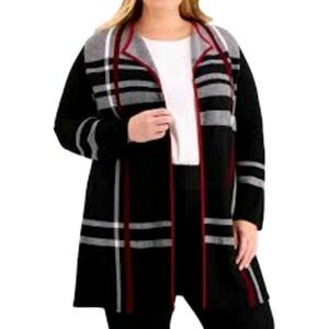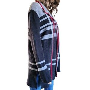Kasper Women Cardigan Size L Black/Red Plaid Long Sleeve Open Front Cotton