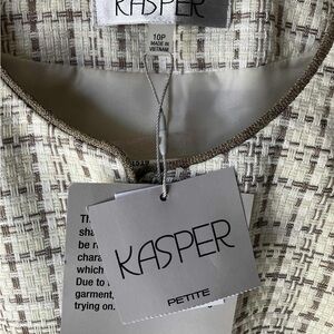 Elevate your wardrobe with this elegant cream jacket from Kasper. Perfect for any occasion, this stylish piece offers both comfort and sophistication.