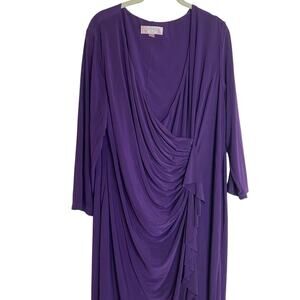 Kasper Womens Dress XL Purple Draped Ruched Sheath Midi 3/4 Sleeve Elegant Party