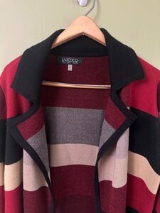 Kasper Womens Duster Size XL Cardigan Patchwork Collared Open Wool Acrylic Blend