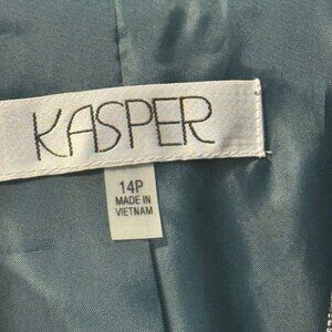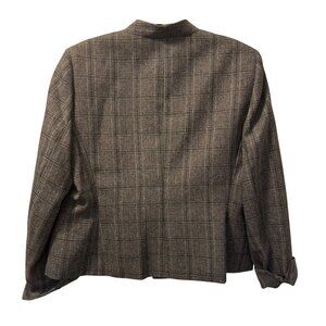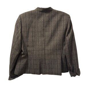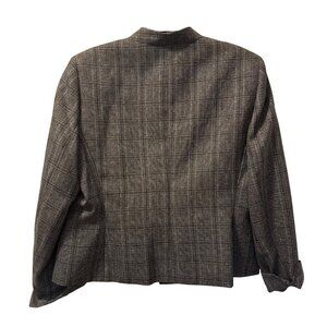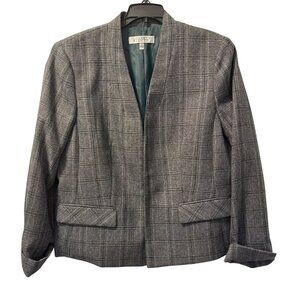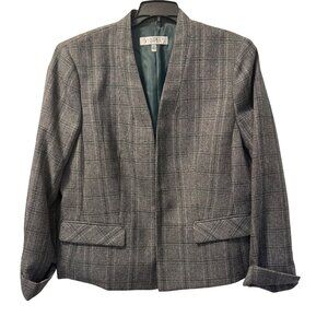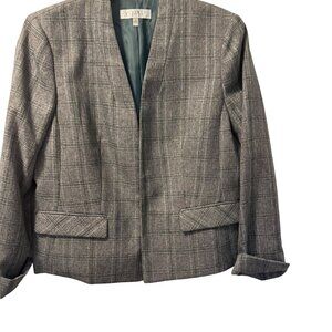 Kasper Womens Plaid Blazer Jacket 14P Polyester Gray Long Sleeve Open Front jack