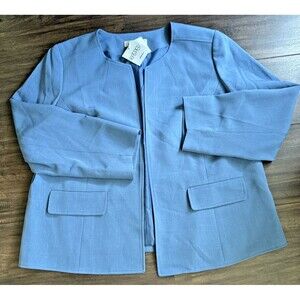 Kasper Women's Plus Size Collarless Open-Front Formal Jacket Blazer sky Blue 18W