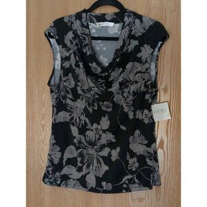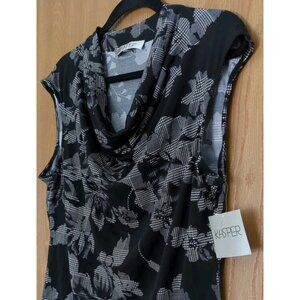 Kasper Womens black and white Printed Cowl Neck Blouse Size L New With Tags