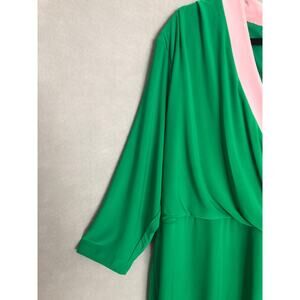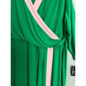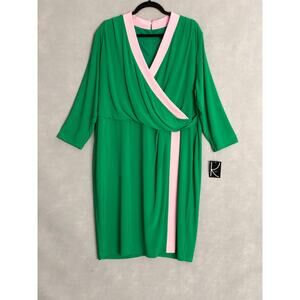 Kasper Women's Size 2X Faux Wrap Dress Green/Pink NEW