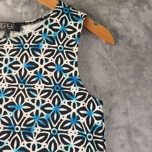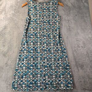 Kasper Womens Sleeveless Shift Dress Blue White Geometric Career Office Workwear