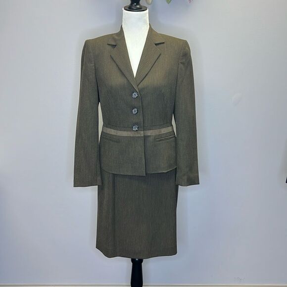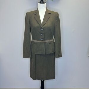 Kasper Women's Two Piece Business Suit Blazer & Skirt in Brown and Olive